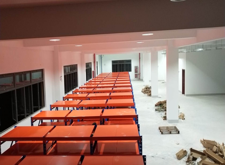 此次客戶采購的是中型層板貨架,根據客戶的實際需要,貨架層數五層,顏色為藍橙色。立柱選用菱形孔設計,配合加強型柱卡,放上貨柱卡與立柱會被壓緊,可以有效防止貨架晃動,增強層板貨架整體系統的穩定性