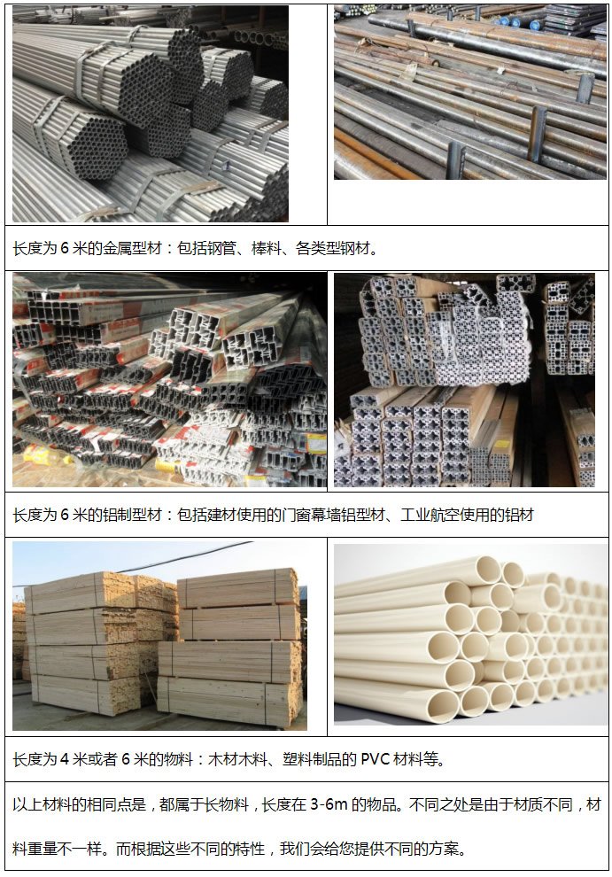 長物料存放架。 長物料,和多數的普通貨物不同。更多的貨物是使用國際標準范圍里的托盤來作為標準,比如1200*1200/1000*1000等等。長物料是木材,板材,管材等等較長的貨物種類。規格從3m-6m不等?赡苓有更長的貨物規格。那么就需要存儲的貨架,有很好的延伸效果,并且能夠滿足不同重量的承載需求。在不同的環境里,采用多樣的存取方式也決定長物料存儲系統的各種屬性。