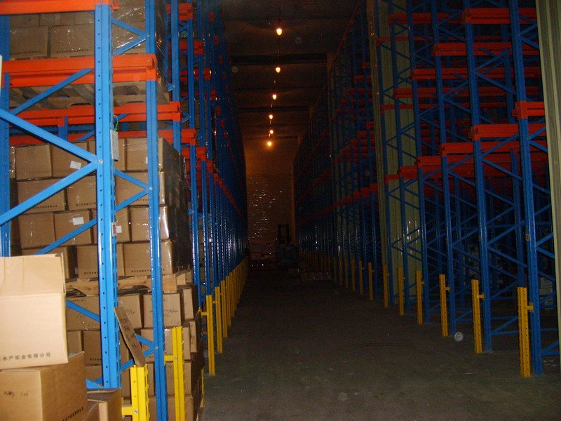 貫通式貨架又稱通廊式貨架或叉車駛?cè)胧截浖堋X炌ㄊ截浖芸晒┎孳嚕ɑ驇ж洸娴臒o人搬運車)駛?cè)胪ǖ来嫒∝浳铮m用于品種少,批量大類型的貨物儲存。貫通式貨架除了靠近通道的貨位,由于叉車需要進(jìn)入貨架內(nèi)部存取貨物,通常單面取貨建議不超過7個貨位深度。為提高叉車運行速度,可根據(jù)實際需要選擇配置導(dǎo)向軌道,與貨位式貨架相比,貫通式貨架(駛?cè)胧截浖埽┑膸炜臻g利用率可提高30%以上,貫通式貨架(駛?cè)胧截浖埽⿵V泛應(yīng)用于批發(fā)、冷庫及食品、煙草行業(yè)。