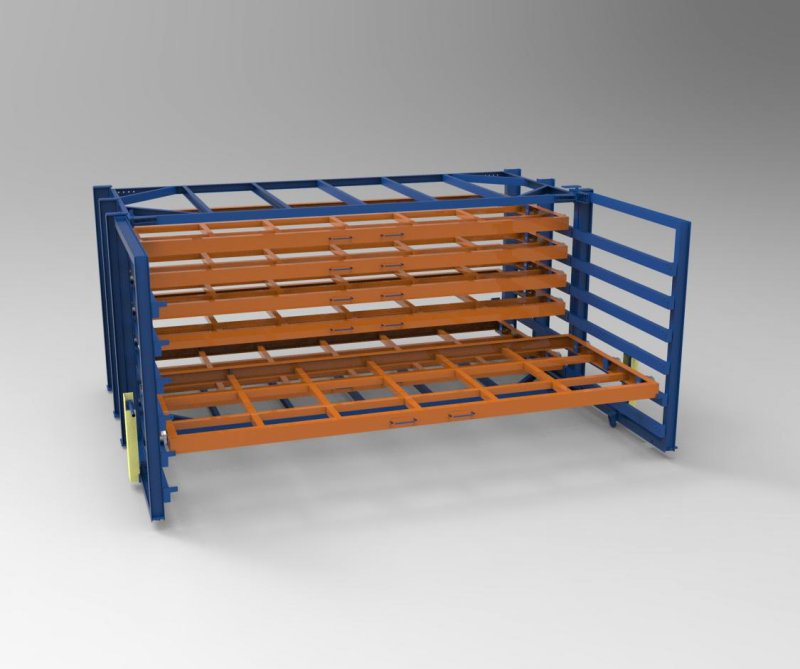 金屬板材存放貨架 板材堆放架工程項目 節(jié)省:節(jié)省大量廠房空間,抽屜式結(jié)構(gòu),可以15層存放,占地空間小,存儲量高。鋼板可以分層分類的存放在同一組貨架上,幾十種規(guī)格尺寸材質(zhì)的鋼板存放在貨架上,瞬間廠房變得寬敞 整齊 明亮,抽屜式結(jié)構(gòu)不需要叉車不需要工業(yè)巷道。天車存放節(jié)省人力,單人可以完成所有的操作,存取速度快,節(jié)省時間。 安全:鋼板存放在地面上占用的空間大,各種規(guī)格的鋼板都堆放在一起雜亂無章,容易磕磕絆絆,上面的鋼板還容易滑動,存在安全隱患,鋼板比較鋒利,人工存取還容易劃傷操作者,存在人員安全隱患。鋼板存放架還可以保護(hù)板材,防止鋼板在運輸中帶來損耗,特別是貴重金屬板材防止劃傷 刮傷 卷邊等情況的發(fā)生。 方便:鋼板存放架采用抽屜式結(jié)構(gòu),每層抽屜單獨拉出,方便鋼板的存取,特別是中間的鋼板也可以直接存放,不受上層或下層鋼板抽屜的影響,讓存取使用更方便。抽屜高標(biāo)準(zhǔn)拉出,操作方便。 快捷:鋼板存放架使用天車存放鋼板,存取速度快捷,鋼板直接存取,幾十種鋼板擺放在不同的抽屜里,貨物一名了然,不用浪費過多的時間,快速的存放所有使用的鋼板,不用反復(fù)整理挪動,讓廠房空間迅速寬敞起來。